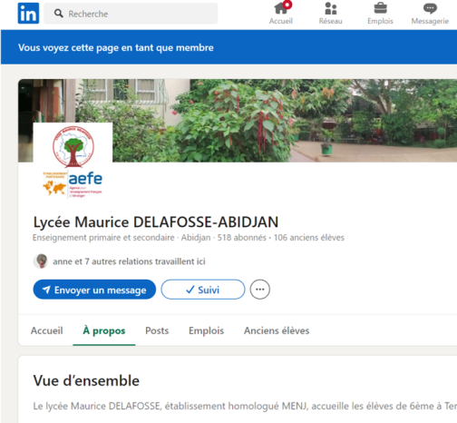 La page LinkedIn officielle du Lycée Maurice DELAFOSSE